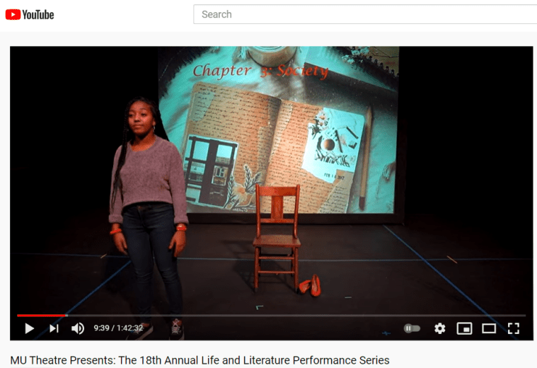Zoe A. Tyler was Stage Manager for the University of Missouri’s Life and Literature Performance Series in 2020. This production is challenging because Zoe had to coordinate the socially distanced filming of 15 pieces with seven different directors.