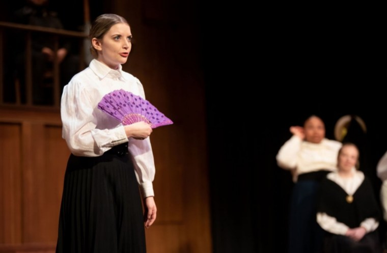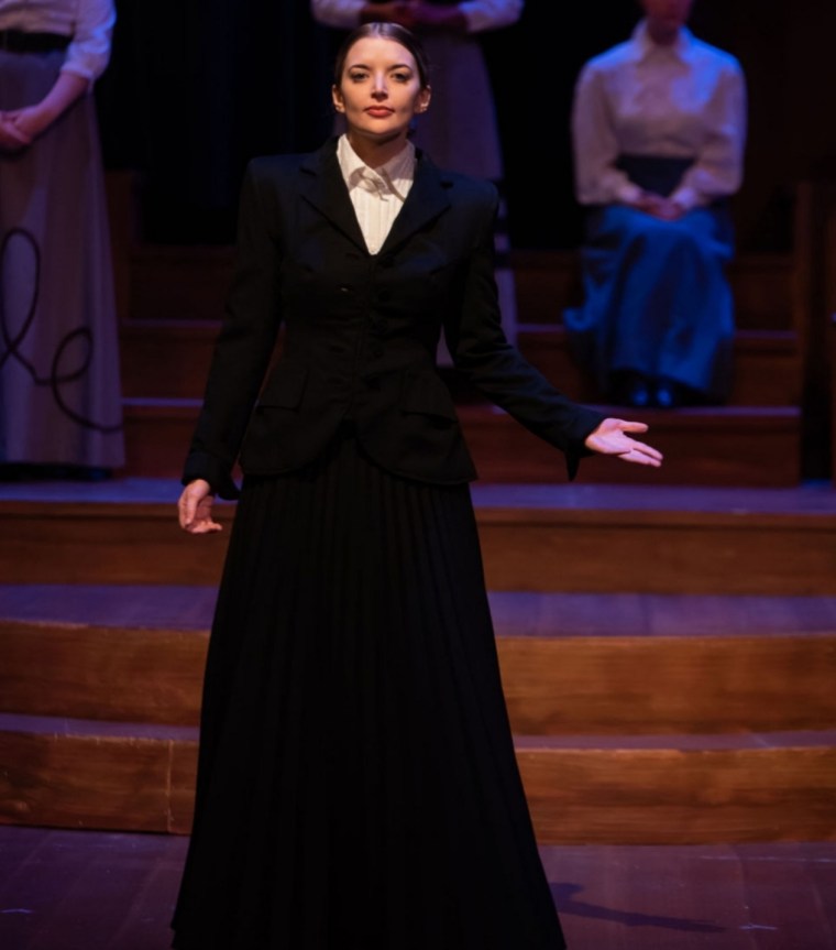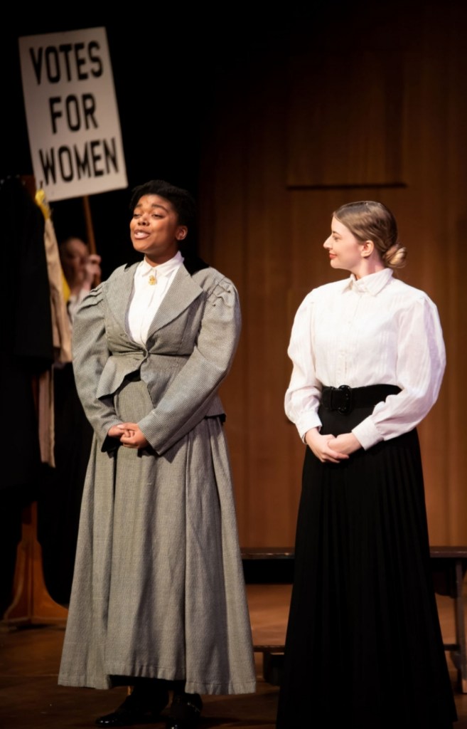 Zoe A. Tyler played a variety of women suffragists, including Lucy Stone, Inez Milholland, and Doris Stevens, in the University of Missouri’s production of Votes for Women. The storytelling was challenging because the play told the overall history of women’s suffrage as opposed to a singular character’s story. Dramaturgical research was a huge asset in this production.
